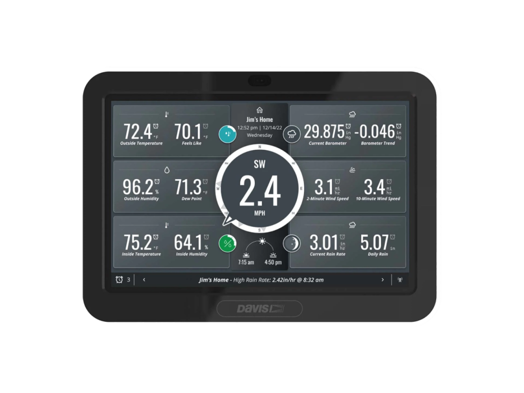 WeatherLink 主机本身就是一个功能齐全、强大的数据展示、储存和分析工具。让你在任何位置都能轻松浏览和分析本地天气数据,或查看最新天气状况。